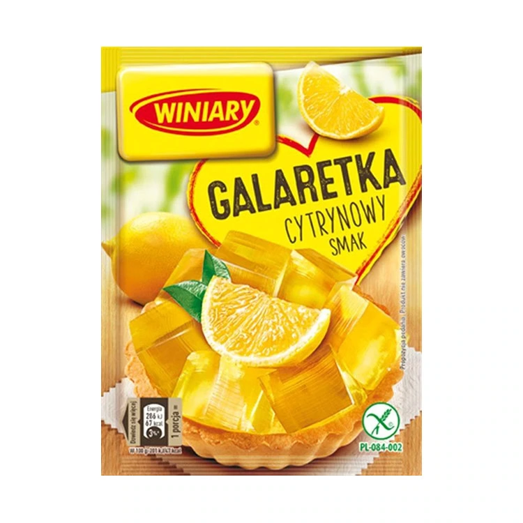 Klasyczny deser instant, który pozwala na szybkie przygotowanie klarownej galaretki o charakterystycznym, słodko-kwaśnym smaku.