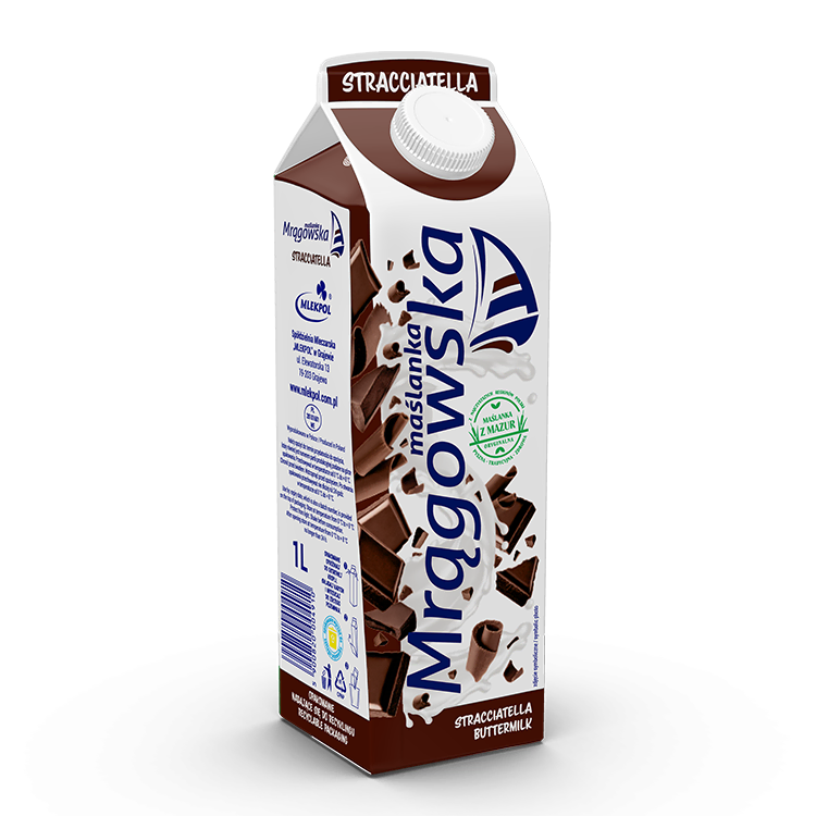Mrągowska to najchętniej kupowana maślanka w Polsce. W wersji straciatella jest ulubionym mlecznym napojem deserowym dzieciaków. Powstaje z najlepszego mazurskiego mleka z dodatkiem aromatycznych kawałków czekolady. Bez syropu glukozowo-fruktozowego.