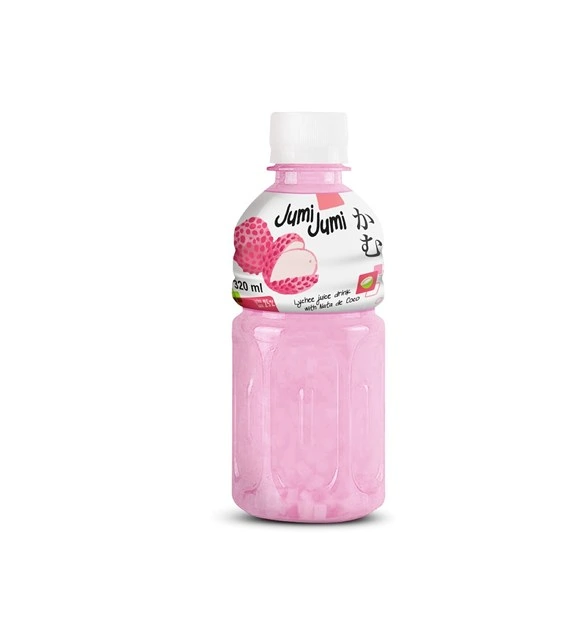 Napój Jumi Jumi o smaku liczi z nata de coco to przysmak, w formie kostek o żelowej spręzystej konsystencji, wytwarzany w procesie fermentacji wody kokosowej. Jest to tradycyjny filipiński deser nazywany galaretką kokosową . JumiJumi to pyszny orzeźwiający owocowy napój i przekąska w jednym! Połączenie uderzająco świeżego soku owocowego i delikatnych kawałków Nata de Coco w jednej butelce zapewnia nowe, wyjątkowe doznania. JumiJumi to jedyne w swoim rodzaju połączenie soku owocowego i delikatnych kawałków galaretki kokosowej w idealnie zbalansowanych proporcjach: 25% naturalnego soku, prosto z owoców (a nie z koncentratu!) + 25% Nata de Coco. A do tego dobroczynny błonnik i 0% tłuszczu.