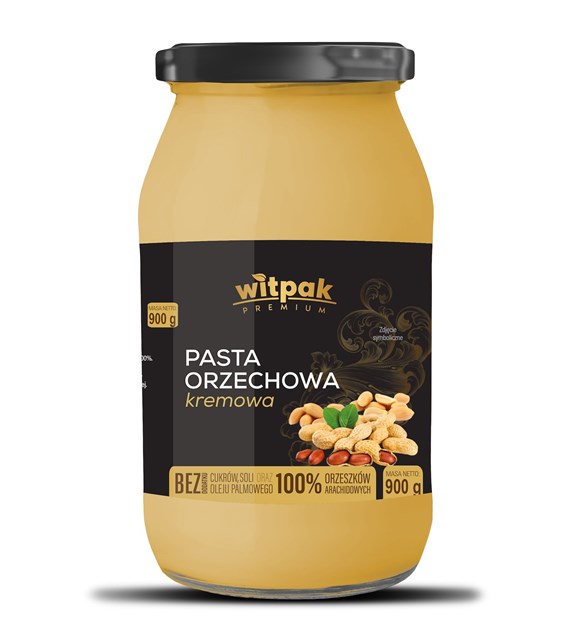 Pasta orzechowa kremowa firmy Witpak została przygotowana z przeznaczeniem dla osób prowadzących aktywny tryb życia. Pasta została wyprodukowana tylko z prażonych orzeszków ziemnych (arachidowych) i idealnie nadaje się jako przekąska na słodko i na słono. Z pasty orzechowej można przygotować pyszne śniadanie, deser, a nawet może być składnikiem obiadu. Komponuje się z mlekiem, owocami, śniadaniowymi płatkami. Może być także składnikiem wypieków i kremów. Pasta orzechowa kremowa charakteryzuje się kremową konsystencją.